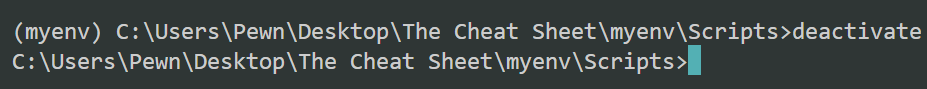 Should you wish to disable or exit the virtual environment that you are using, simply enter the following command :